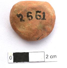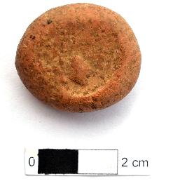 | Description / विवरण | It is a Terracotta sealing of baked clay. The upper half, which is separated from the lower by double horizontal line, depicting two deer and a wheel in-between, below it there is legend in Brahmi. |