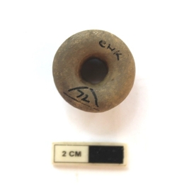 | Description / विवरण | A terracotta bead. It is gray in color and partially damaged. |