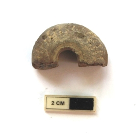 | Description / विवरण | A terracotta bead. Half portion is missing and it is gray in color. |