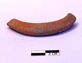 | Description / विवरण | A well baked piece of a broken terracotta bangle, having a triangular section |