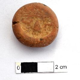 | Description / विवरण | It is a Terracotta sealing of baked clay. The upper half, which is separated from the lower by double horizontal line, depicting two deer and a wheel in-between. |