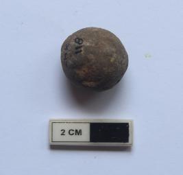 | Description / विवरण | A sling ball in a spherical shape. It is gray in color. |
