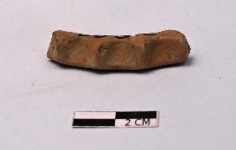 | Description / विवरण | A piece of a broken terracotta bangle with corrugated design on the outer side while the inner side is plain . It has a oval section. |