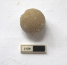 | Description / विवरण | A sling ball in a spherical shape. It is gray in color. |