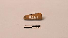 | Description / विवरण | A conical shaped terracotta bead with a narrower hole on one end . The bead is well baked and has a plain surface |