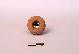 | Description / विवरण | A ring shaped terracotta bead with a thick section. The drill hole has ground ,abraded and chipped of wear .Its periphery is slightly mutilated. |