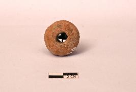 | Description / विवरण | A ring shaped terracotta bead with a thick section. The drill hole has ground ,abraded and chipped of wear .Its periphery is slightly mutilated. |