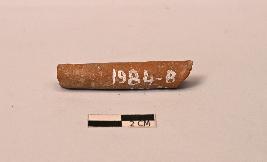 | Description / विवरण | Broken long barrel shaped bead. Its drill hole suffers convex wear . The surface is well baked and have wear and tear scars |