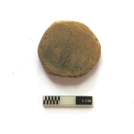 | Description / विवरण | A hopscotch in a circular shape. It is dull red and black in color and partially damaged. |