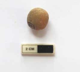 | Description / विवरण | A sling ball in a spherical shape. It is red in color. |