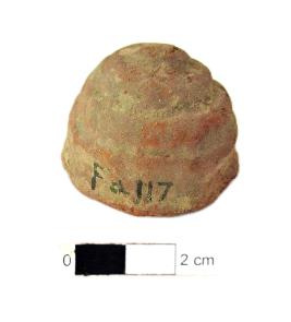 | Description / विवरण | It is a terracotta conical object observed as votive Stupas having spiral ornamentation on the outside with a flat base . |