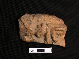 | Description / विवरण | Fragmentary Terracotta plaque, showing a head of a Buddha. Ushnisha and face is visible. The object is red in colour with smooth surface. |