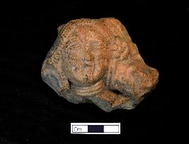 | Description / विवरण | Fragmentary Terracotta plaque, showing a female head in low relief with ornamentation. Face is slightly eroded. The object is red in colour with smooth surface. |