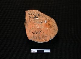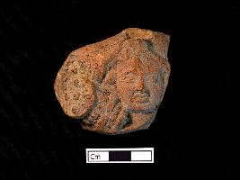 | Description / विवरण | Fragmentary Terracotta plaque, showing a female head in low relief with ornamentation. Face is slightly eroded. The object is red in colour with smooth surface. |