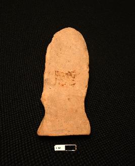 | Description / विवरण | A terracotta plaque depicts a human figurine in seated posture with eroded face. Left hand is partly visible. The object is red in colour with smooth surface. |