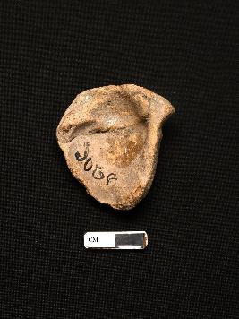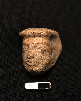 | Description / विवरण | A terracotta head with a headgear which looks like a cap. Eyes, nose and lips are visible. The object is red in colour. |