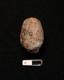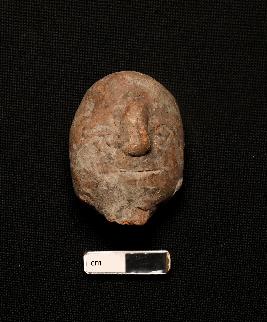 | Description / विवरण | A Fragmented terracotta head with red in colour. The face is totally eroded and only nose is visible. |