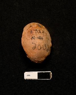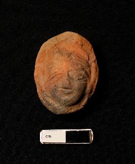 | Description / विवरण | A terracotta head with red in colour. The forehead portion bears a number of chain like incisions with central motif. Left eye, nose and lips are visible. |