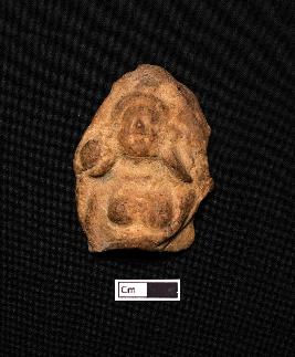 | Description / विवरण | A fragmented terracotta plaque showing a female figurine eroded face and partly visible headgear. Breasts can be seen. |