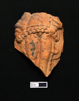 | Description / विवरण | A fragmented terracotta plaque showing human figurine which is red in colour. Bangles can be seen. Both of the wrist are rested on the waist. A decorated girdle is visible. Folds of drapery is seen at both sides. The figurine is intact from the belly upto the knees and rest is missing. |