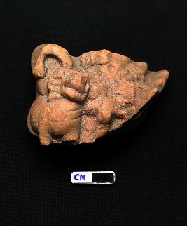 | Description / विवरण | A fragmented terracotta plaque showing an animal figurine. Right horn is visible and mouth is partly open. |