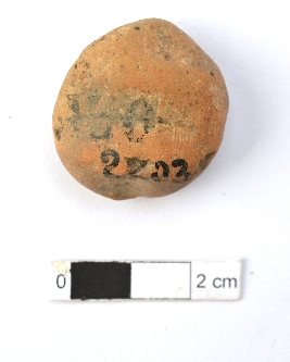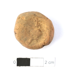 | Description / विवरण | It is a circular terracotta sealing of baked clay, the impression is not clear due to weathering, the impression of wheel is observed. |