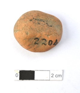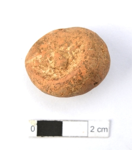 | Description / विवरण | It is a circular terracotta sealing of baked clay, the impression is not clear due to weathering, impression of wheel can be observed. |