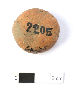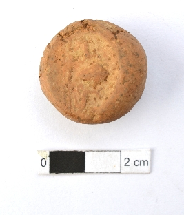| Description / विवरण | It is a circular terracotta sealing of baked clay, the impression is not clear due to weathering, the impression of wheel can be observed. |