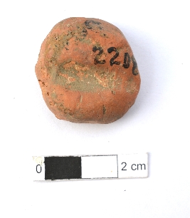 | Description / विवरण | It is an almost circular terracotta sealing of baked clay, the impression is not clear due to weathering. |