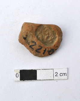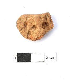 | Description / विवरण | It is a broken terracotta sealing of baked clay. The sides are broken and appears highly weathered on the other side some circular impression can be seen which is not clear due to weathering. |