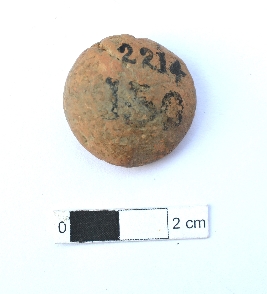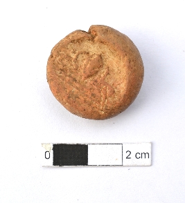 | Description / विवरण | It is an almost circular terracotta sealing of baked clay, the impression of two deer and a wheel in-between can be observed. |