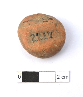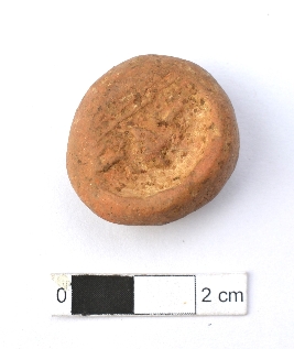 | Description / विवरण | It is an almost circular terracotta sealing of baked clay, the impression is which is separated from the lower by double horizontal line, depicting two deer and a wheel in-between. |