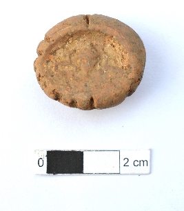 | Description / विवरण | It is a terracotta sealing of baked clay, the impression of wheel and two deer is observed. |