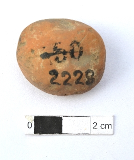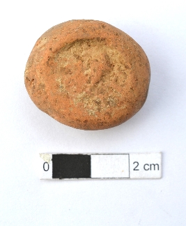 | Description / विवरण | It is a terracotta sealing of baked clay. There is a wheel at the sealing, the legend is weathered and not readable. |
