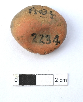 | Description / विवरण | It is a terracotta sealing of baked clay. The upper half, which is separated from the lower by double horizontal line, depicting two deer and a wheel in-between, the legend is weathered and not readable. |