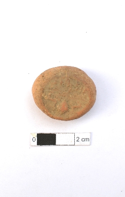 | Description / विवरण | It is a terracotta sealing of baked clay. The upper half, which is separated from the lower by double horizontal line, depicting two deer and a wheel in-between. |