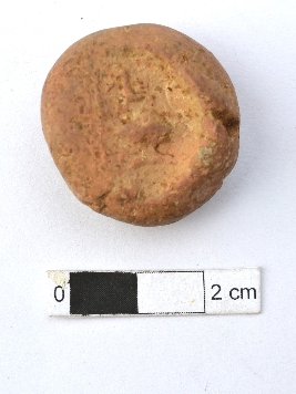 | Description / विवरण | It is a terracotta sealing of baked clay. The upper half, which is separated from the lower by double horizontal line, depicting two deer and a wheel in-between. |