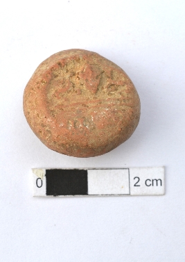 | Description / विवरण | It is a terracotta sealing of baked clay, the legend at the back has worn out. |