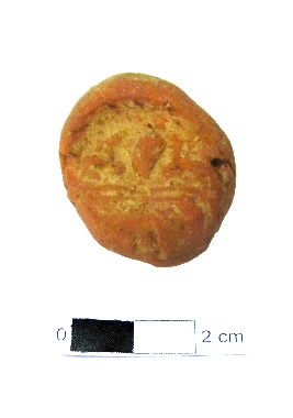 | Description / विवरण | It is a terracotta sealing of baked clay. The upper half, which is separated from the lower by double horizontal line, depicting two deer and a wheel in-between. |
