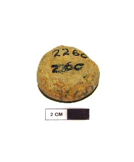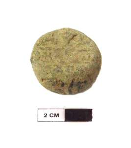 | Description / विवरण | It is a terracotta sealing of baked clay. The upper half, which is separated from the lower by double horizontal line, depicting two deer and a wheel in-between, below it there is legend which is worn off. |