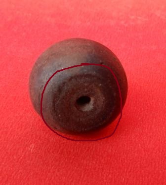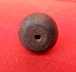 An Areca nut shaped Terracotta Bead which is light black in color.