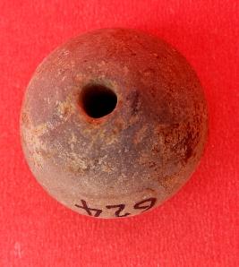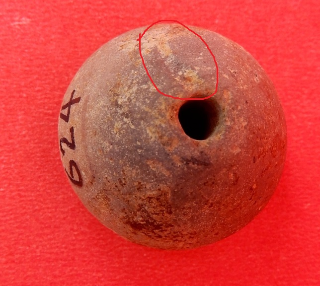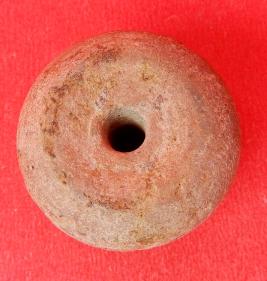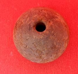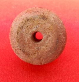 An Areca nut shaped Terracotta Bead which is light black in color. One side of the bead is flat.