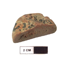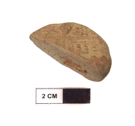 | Description / विवरण | It is a terracotta sealing of baked clay, the legend at the back has worn out. |