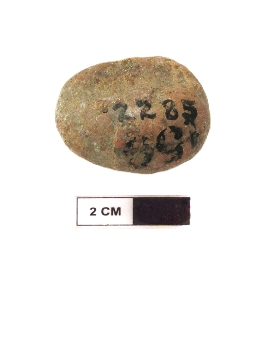 | Description / विवरण | It is a terracotta sealing of baked clay. The upper half, which is separated from the lower by double horizontal line, depicting two deer and a wheel in-between. |