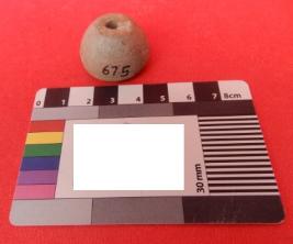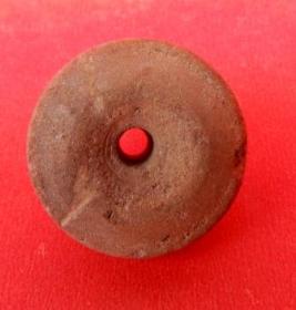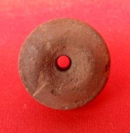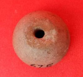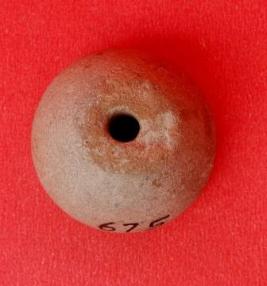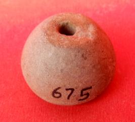An Areca nut shaped Terracotta Bead which is light black (brown touch) in color.