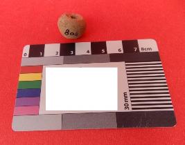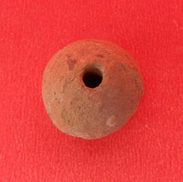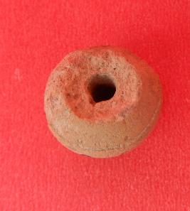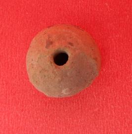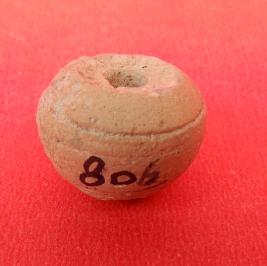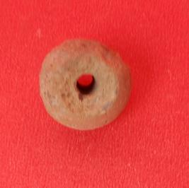 An Areca nut shaped Terracotta Bead light black in color. At middle of the Bead is decorated with a one thin line group.