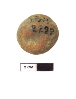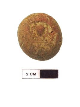 | Description / विवरण | It is a terracotta sealing of baked clay. The upper half, which is separated from the lower by double horizontal line, depicting two deer and a wheel in-between. |
