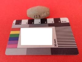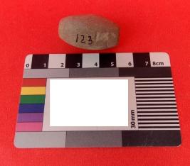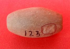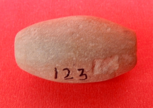 An barrel shaped Terracotta Bead which is light grey in color. Both holes of the Bead are slightly made big.