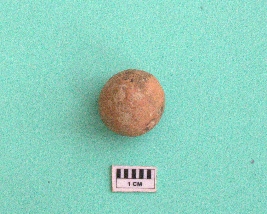 | Description / विवरण | A sling ball in a spherical shape. It is dull red in color. |