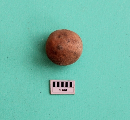 | Description / विवरण | A sling ball in spherical shape. It is dull red in colour. |